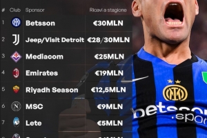 在线下注-意甲球队球衣赞助排行:国米3000万欧最高,尤文第二,米兰第四