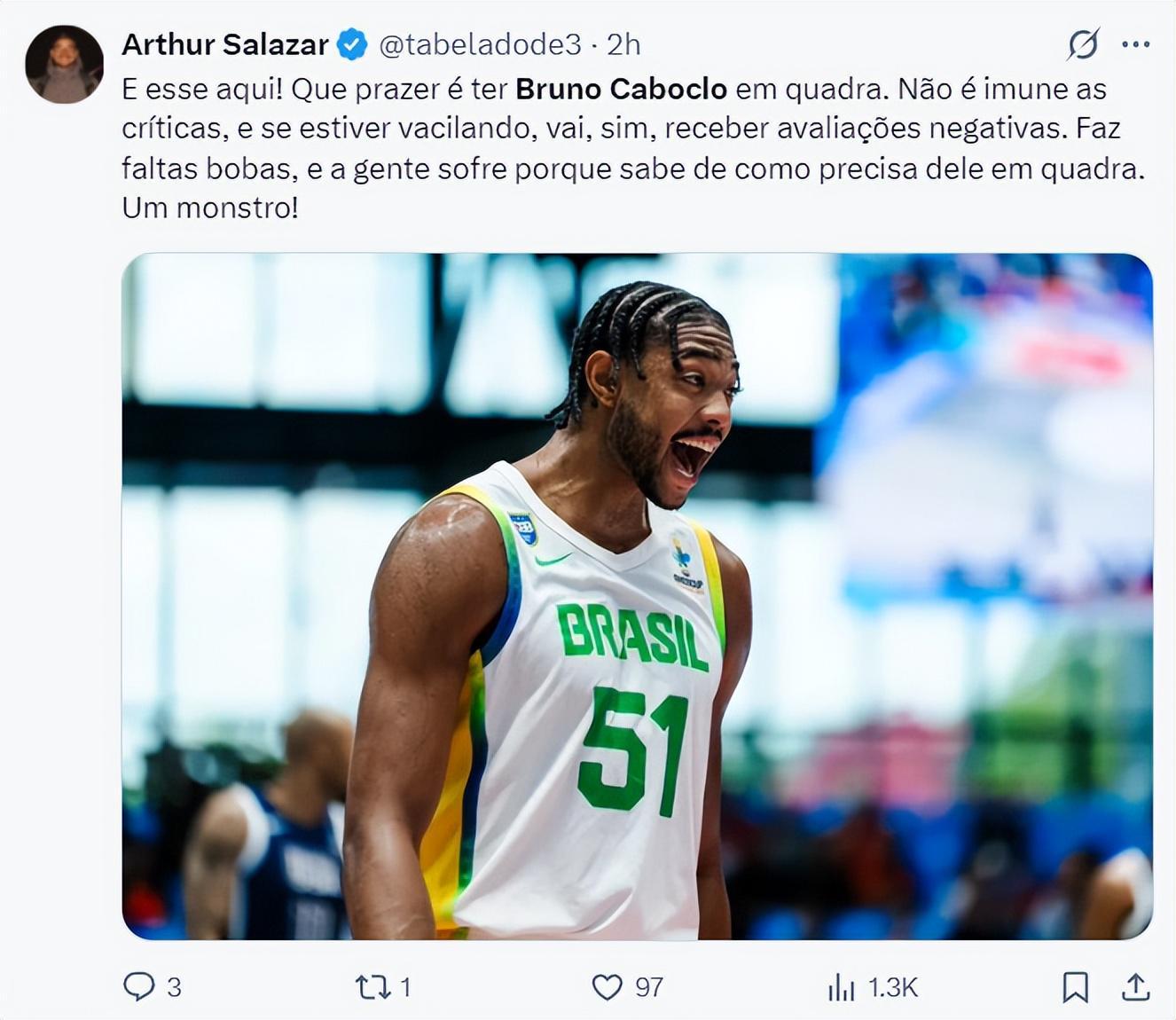 这支巴西男篮晋级美洲杯决赛,卡波克洛、德保拉、迪亚斯、桑托斯都是大功臣,小后卫雅戈-桑托斯成为了本场比赛的MVP,他全场比赛34分钟,14中7,三分6中3,罚球8中8拿到25分12助攻4篮板,命中率50%,但很多人都觉得卡波克洛在末节的发挥更为关键。