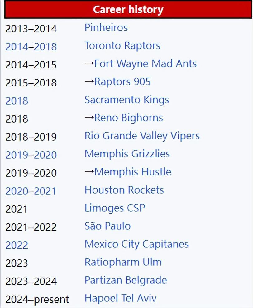 卡波克洛职业生涯已经混迹多个国家的联赛,2024年至今效力马卡比。
